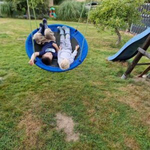 Im überdachten Außenbereich können die Kinder auch bei Regen und Hitze draußen spielen. Ansonten können meine Tageskinder rutschen, schaukeln oder mit eins der vielen Fahrzeuge fahren, die ihnen hier zur Verfügung stehen.