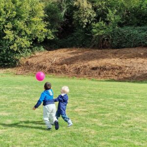 Meine Tageskinder spielen in einem ca30qm großem Betreuungsraum, außerdem steht ihnen ein Bewegungsraum mit einem Trampolin und diversen Klettergeräten zur Verfügung.