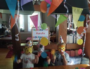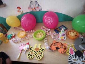 Unsere Partybox ist nun auch in Rühle zum Einsatz gekommen. Die Tageskinder von Heike haben mit viel Freude die Tiermasken aufgesetzt und die Luftballons tanzen lassen. Das besonderes Highlight