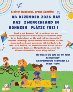 Freie Plätze im „Zwergenland“ in Dohnsen ab Dezember 2026!